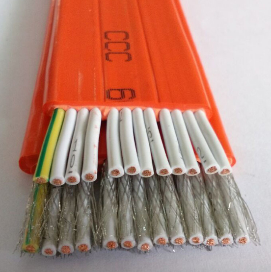 TVVBPG---铜芯聚氯乙烯绝缘、聚氯乙烯护套、铜网屏蔽、钢丝加强芯、扁电梯电缆。
